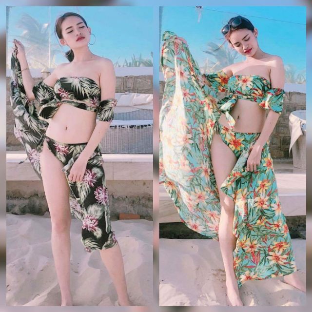 Kết hợp bikini trễ vai cùng với khoác ngoài đồng màu, cô nàng mùa hè sẽ trở nên sang chảnh và quý phái hơn. Cùng cách mix-match với kính mát và trang sức phù hợp, bộ bikini này sẽ không chỉ đẹp mà còn thời thượng đến lạ.