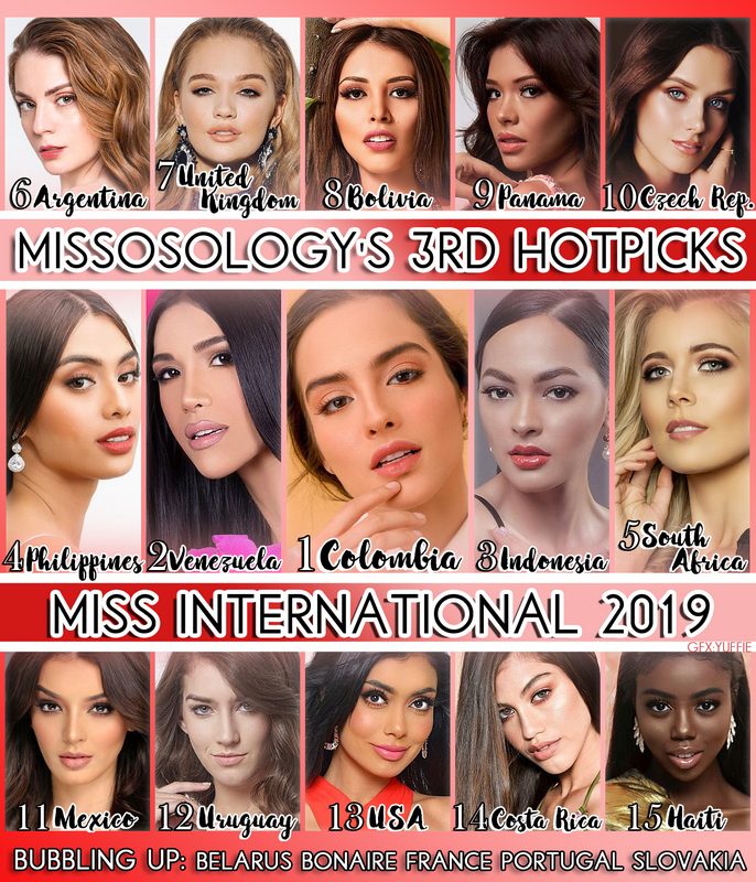 Hiện nay chuyên trang sắc đẹp Missosology đã đưa ra bản dự đoán kết quả dựa trên các ứng cử viên đã lộ diện. Theo đó những quốc gia như Indonesia, Philippines, Venezuela.. đang được đánh giá rất cao.