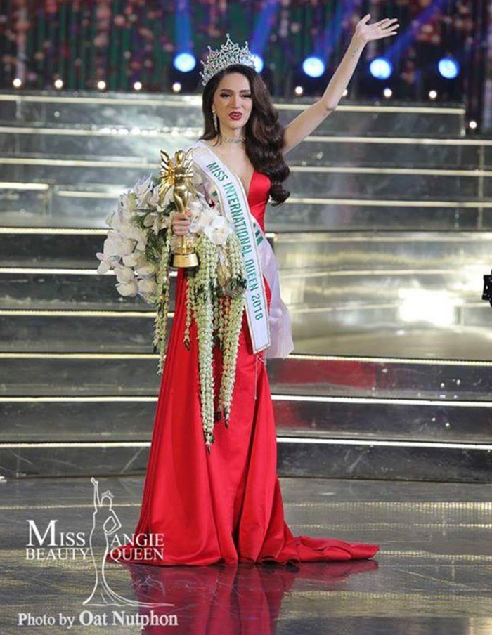 Ít ai ngờ rằng cũng tầm một tiếng đồng hồ sau cô lại được xướng tên cho ngôi vị Hoa hậu chuyển giới Quốc tế 2014.
