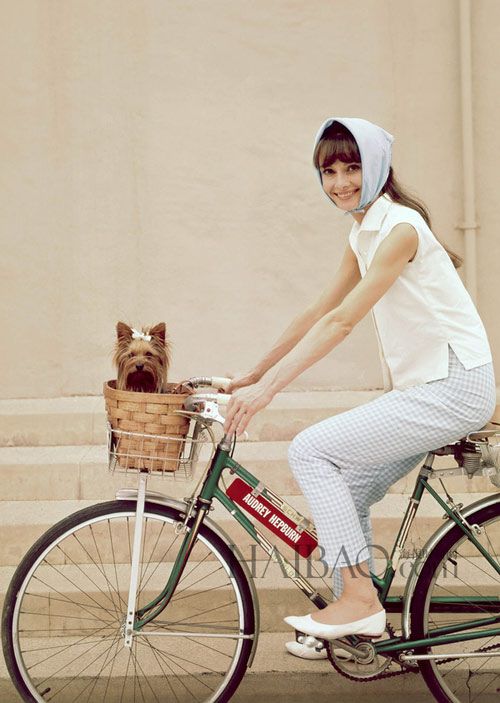 Hình ảnh này khiến ta nhớ ngay đến những minh tinh hàng đầu như Audrey Hepburn hay Marylin Monroe… với khăn trùm đầu hình vuông được gấp thành một hình tam giác và cột nhẹ dưới cằm hoặc quấn quanh cổ, kính mắt quá khổ, môi son đỏ, ngồi trên chiếc xe hơi không mui hay thong dong trên chiếc xe đạp giỏ mây, chính là hình ảnh đáng ngưỡng mộ trong những thước phim kinh điển.