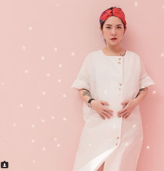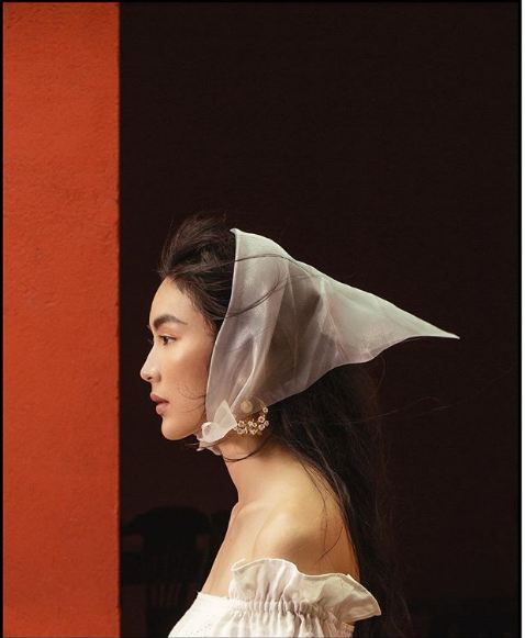 Stylist Lâm Thúy Nhàn với khăn buộc đầu đơn giản, tạo điểm nhấn cho chiếc đầm trắng tinh khôi.