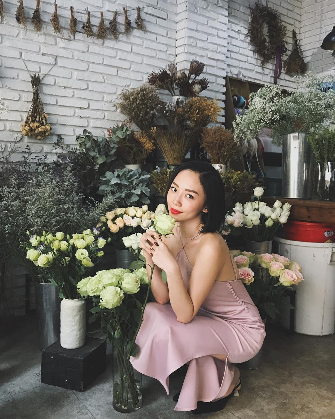 Một chiếc váy ôm khác với kiểu cổ yếm khiến Tiên khoe trọn nét đằm thắm của mình.
