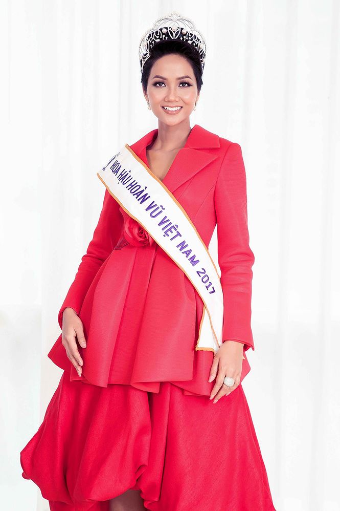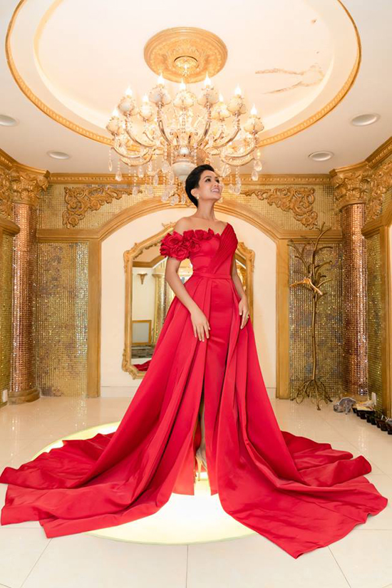 Vì bản thân sắc đỏ đã rất nổi bật, nên việc chọn một chiếc đầm với thiết kế đơn giản cũng đủ giúp H'Hen Niê xinh đẹp thay vì một chiếc đầm với những chi tiết cầu kì hay bèo nhún quá nhiều.