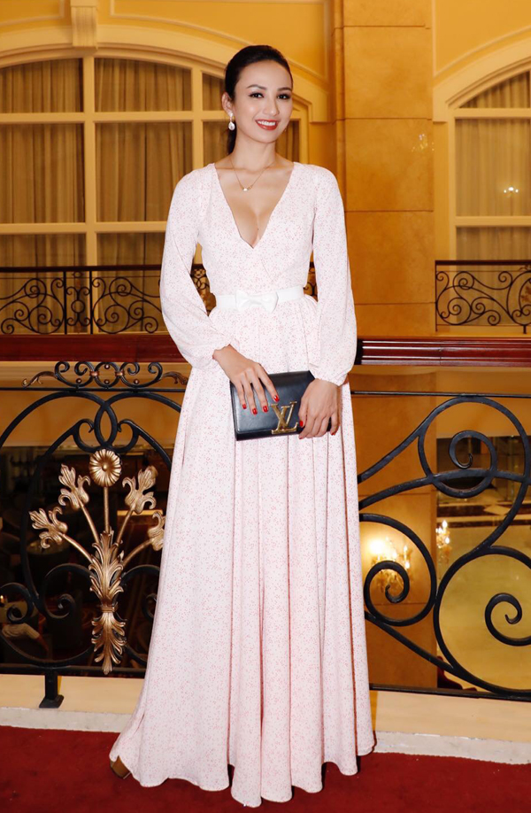 Luôn xuất hiện trên thảm đỏ với thần thái rạng ngời, thế nhưng với bộ cánh mới nhất, người hâm mộ lại cảm thấy Angela Phương Trinh “sai” quá đỗi. Thử nghiệm phong cách cổ điển, “Bà mẹ nhí” chọn cho mình chiếc đầm xanh suôn đuột giấu hết mọi đường cong, cùng phụ kiện bao tay có phần rườm rà. Nhiều người còn tếu táo đùa rằng, do quá vội nên Trinh đã mượn nhầm đồ bầu đi sự kiện chăng?