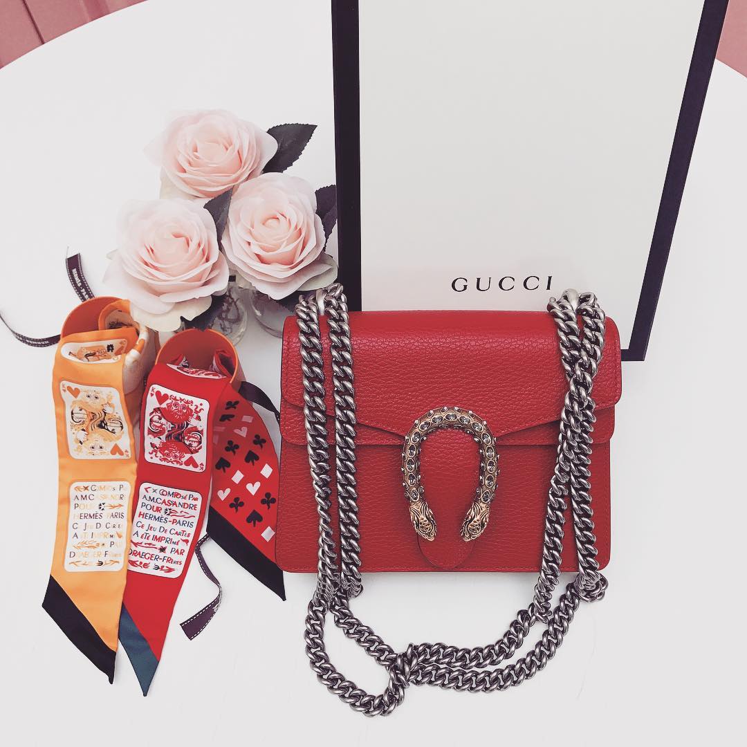 Ngọc Trinh cũng là những “tay chơi” đồ hiệu đỉnh cao trong dịp Tết 2018. Người đẹp tậu cho mình một chiếc clutch Gucci màu đỏ cho hợp với năm mới.
