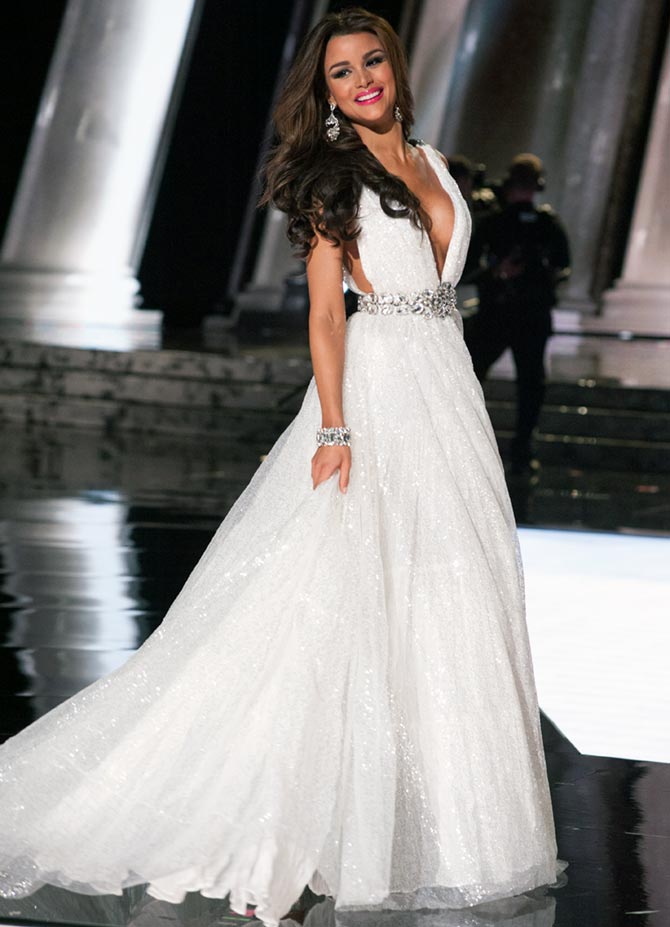 Theo số đông fan sắc đẹp, kiểu váy Hoàng Thùy cần nên tránh tiếp theo đó chính là kiểu váy công chúa bồng bềnh. Clarissa Molina người đẹp đến từ Cộng hòa Dominica đã không thể vượt qua cửa ải trong phần thi trang phục dạ hội khi cô chọn kiểu trang phục công chúa.
