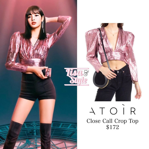 Lisa được stylist chọn mặc kiểu áo croptop tay dài mix cùng quần lưng cao và giày boots cổ cao. Chiếc áo đã được qua chỉnh sửa để tránh “lộ hàng”