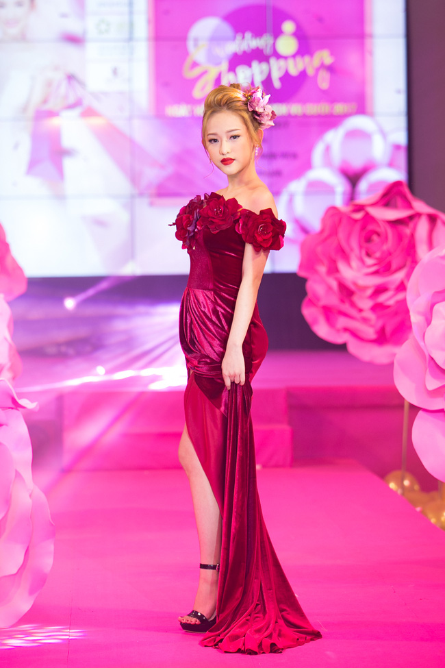 Trong bộ đầm với chất liệu nhung đỏ này, khó lòng có thể nghĩ rằng Thúy Vi chưa đầy 20 tuổi.
