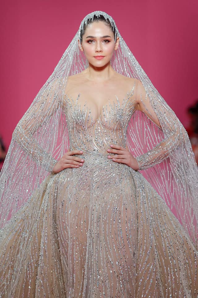 Cô “hớp hồn” khán giả trong chiếc váy cưới trong suốt xuyên thấu đính đá lấp lánh