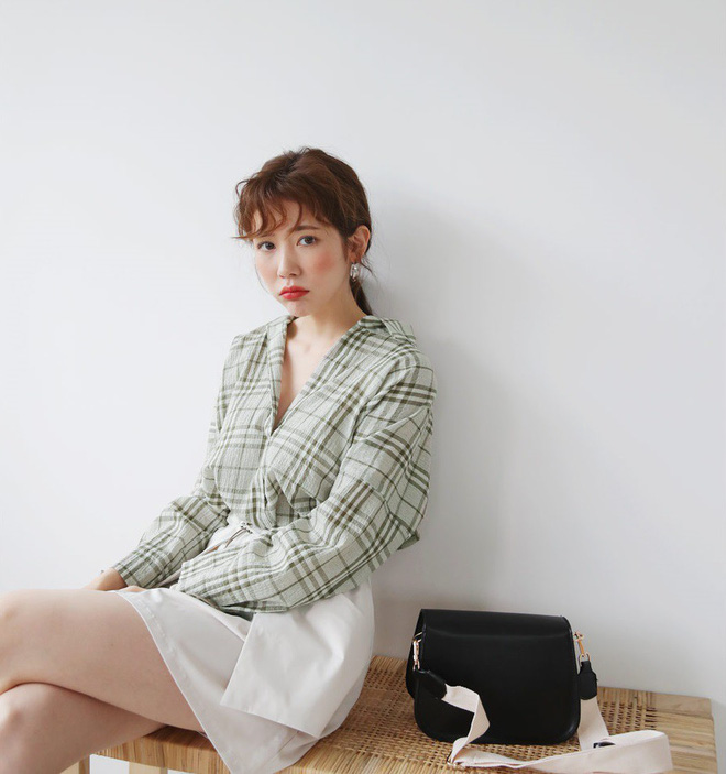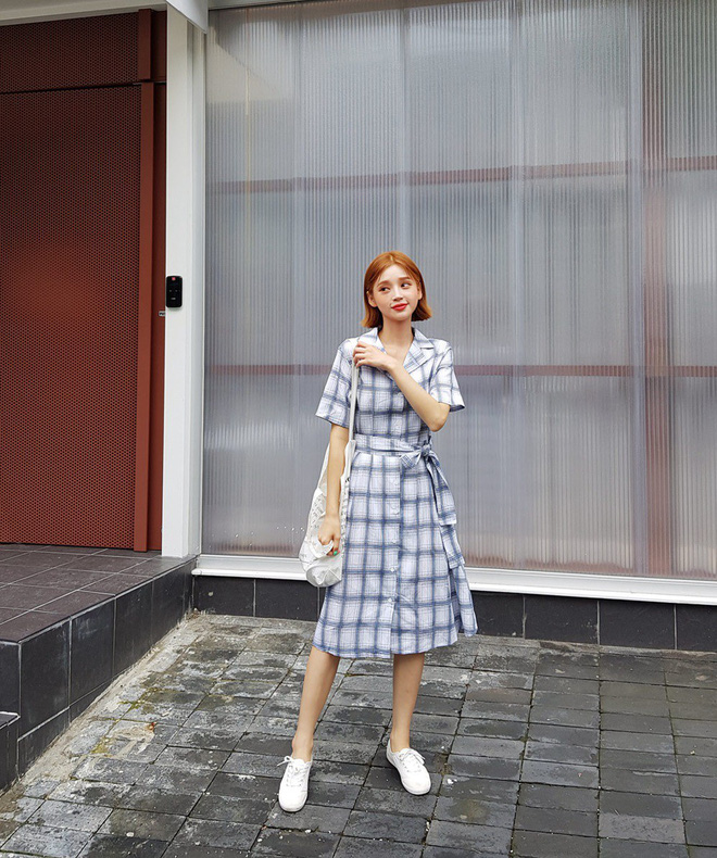 Những chiếc váy kẻ ca-rô là item quen thuộc với nhiều cô nàng, bản thân hoạ tiết này đã khá nổi bật rồi, nên chẳng cần mix quá nhiều thứ.