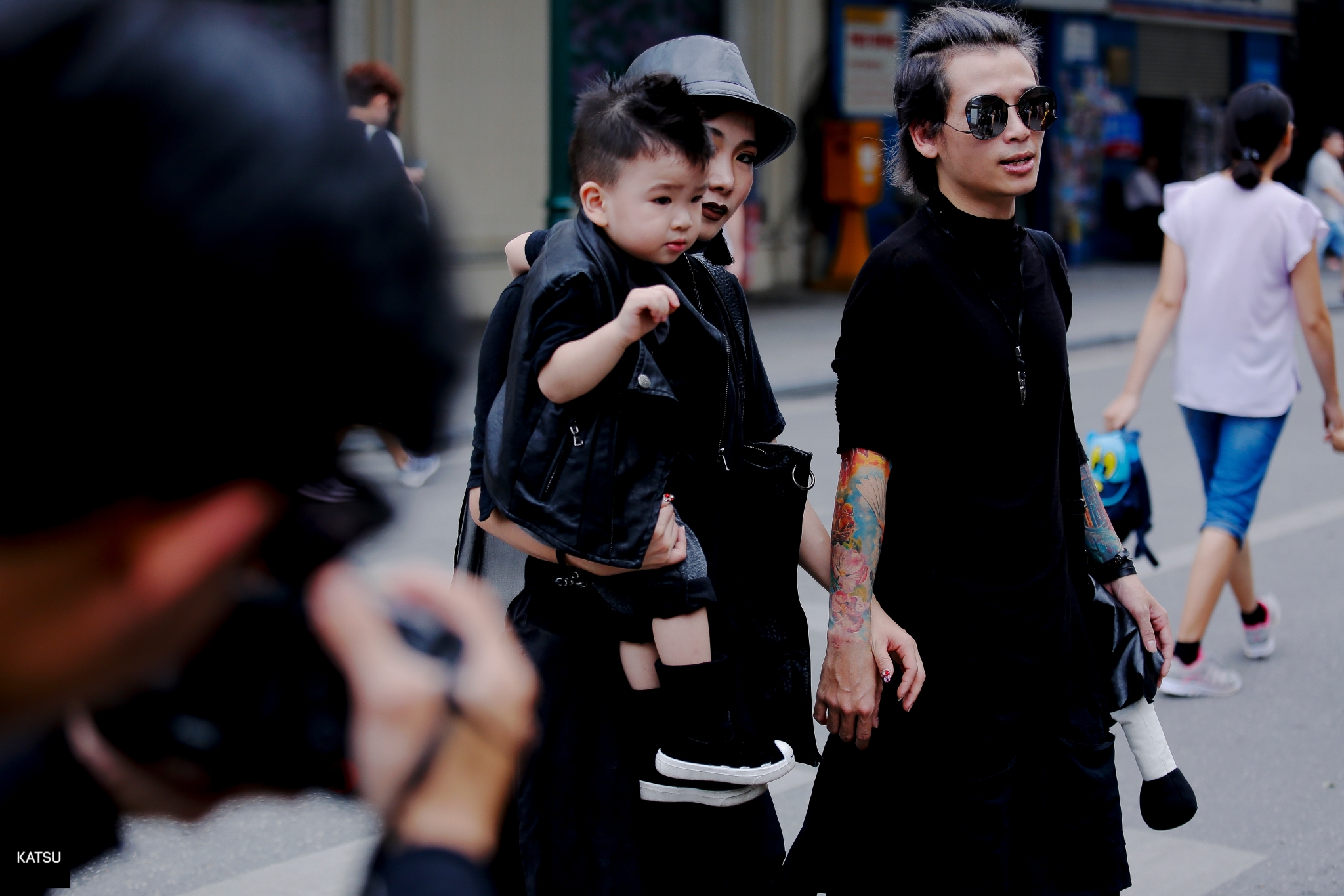 Đây được xem như một gia đình thời trang “chất nhất quả đất”. Từ bố, mẹ cho đến cậu bé trai kháu khĩnh cũng đều chọn tông đen trên trang phục thu hút cánh săn ảnh đường phố khi xuất hiện.
