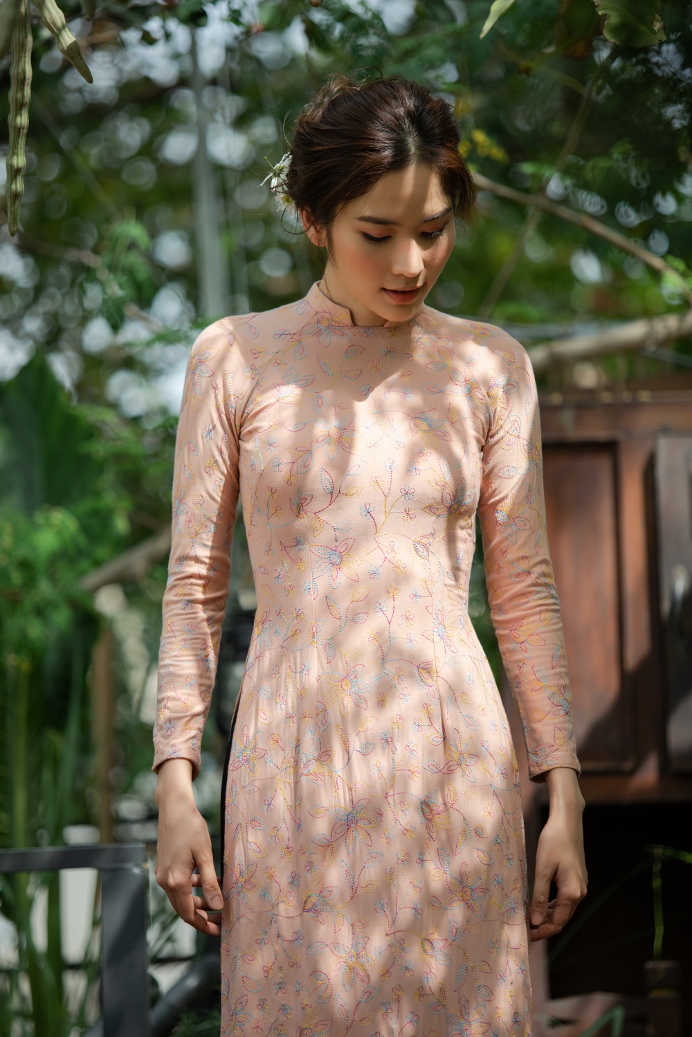 Năm nay, những thiết kế với màu sắc tươi sáng, trẻ trung, hài hòa với những họa tiết thêu hoa nhỏ li ti tinh tế, nhẹ nhàng, dễ thương làm tăng thêm nét dịu dàng, nữ tính đầy ngọt ngào cho người mặc.