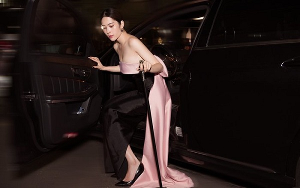 Nam Em vừa qua đã thu hút báo sự chú ý khi cô diện kiểu váy đen cúp ngực nhấn nhá kiểu nơ hồng rũ dài làm điểm nhấn, thiết kế mà người đẹp mặc cùng “phụ kiện đặc biệt” là cây gậy đen đã làm fans liên tưởng đến kiểu suit xám lịch lãm kèm theo cây gậy ba toong mà Sơn Tùng từng mặc trước đó.