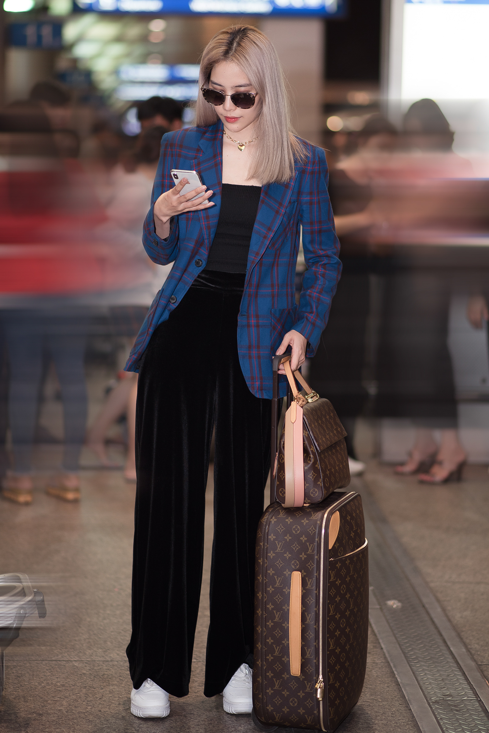 Không chỉ gây chú ý về ngoại hình nổi bật, cô nàng còn khiến mọi người “mắt tròn mắt dẹt” khi “sánh đôi” cùng bộ đôi vali - túi xách đến từ nhà mốt nổi tiếng LV. Được biết, chiếc túi xách của cô nàng có giá 1,590,00 € ~ khoảng 42 triệu đồng và giá của chiếc vali cũng “không phải dạng vừa” khi ngốn của cô nàng hơn 75 triệu đồng.