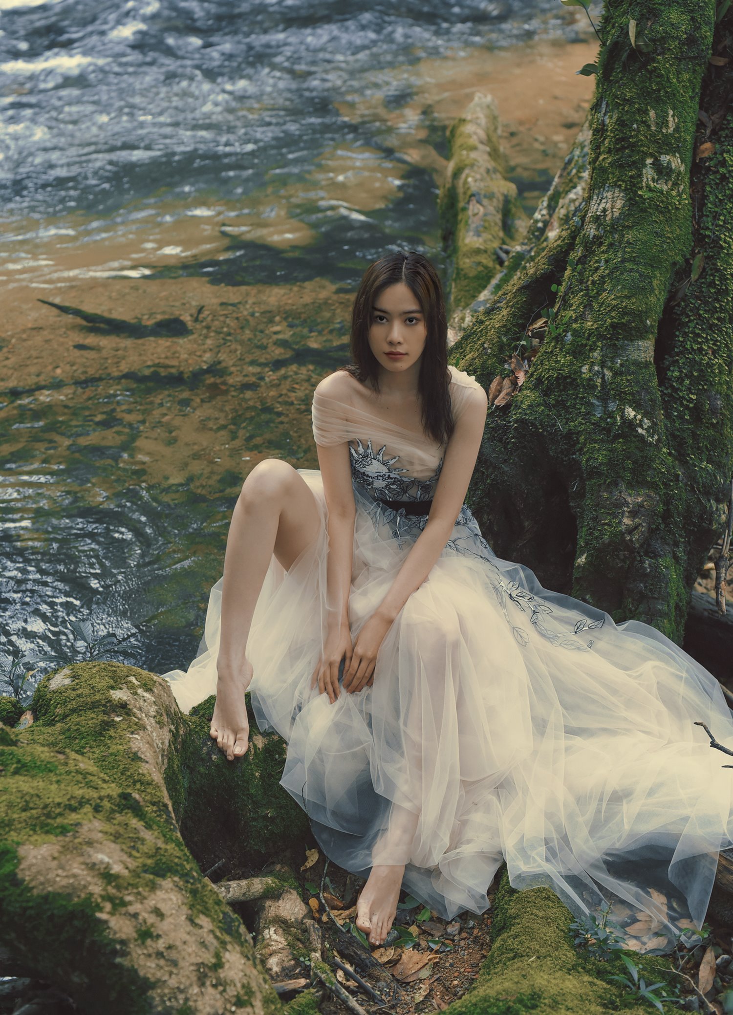 Lựa chọn Lâm Đồng - Đà Lạt nơi có không khí trong lành, cây xanh và hồ suối tự nhiên, Nam Em đã hóa thân thành một “tiên nữ giáng trần” hòa mình vào thiên nhiên, cô đi qua những con suối, những ngọn đồi ngập màu xanh của cây cỏ lưu giữ lại những khoảnh khắc đẹp nhất nơi đây, bên cạnh đó diện những chiếc váy dài bay bổng giúp Nam Em trở nên xinh đẹp và quyến rũ khiến người nhìn dễ dàng bị mê hoặc.