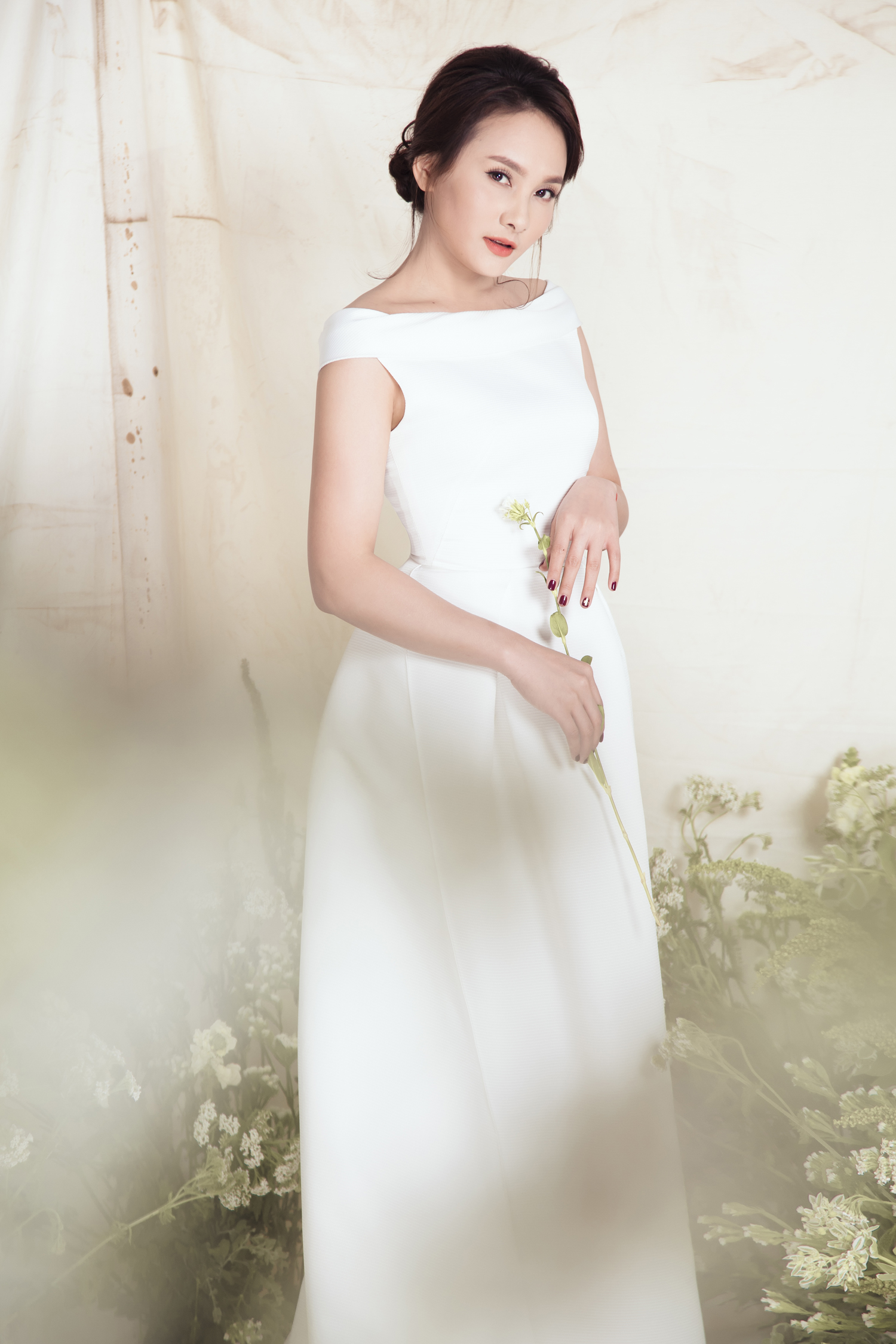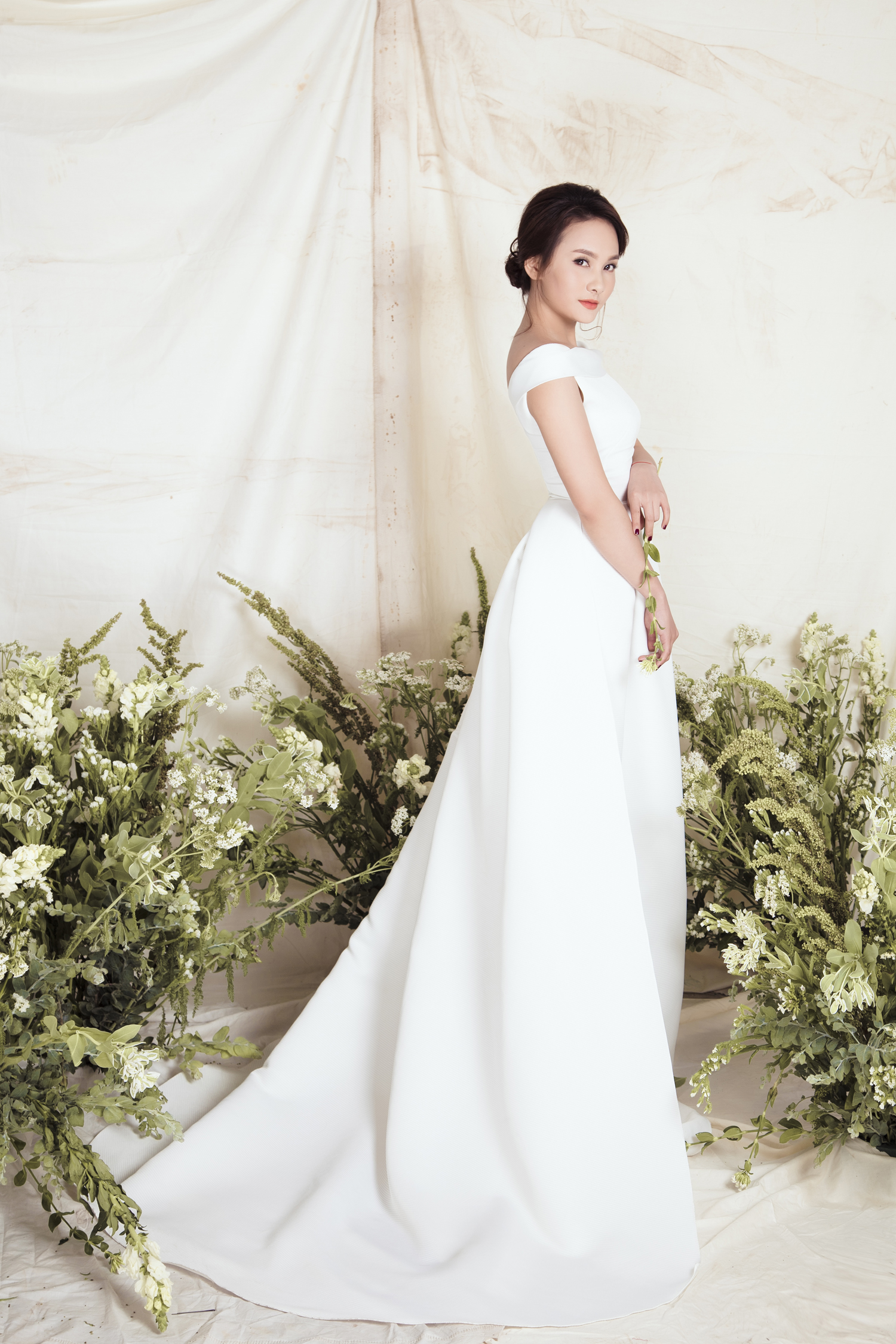 Bên cạnh các thiết kế ren, voan sử dụng nhiều họa tiết, những chiếc váy trắng trơn tinh giản, chú trọng vào đường cắt cúp và dựng phom cũng rất được lòng bạn gái trong mùa cưới thu, đông năm nay.