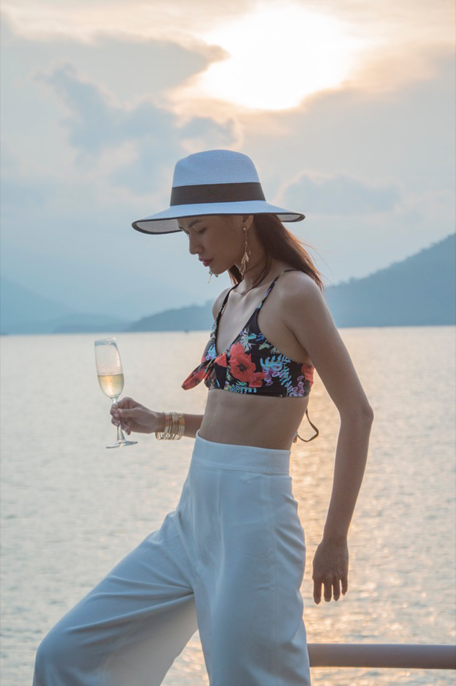 Với những bộ đồ bơi cổ V khoét sâu, những chiếc áo khoác ngoài và những phụ kiện bản to đã giúp cho Cao Thiên Trang và Kikki Lê vô cùng sexy và gợi cảm hơn nhiều.