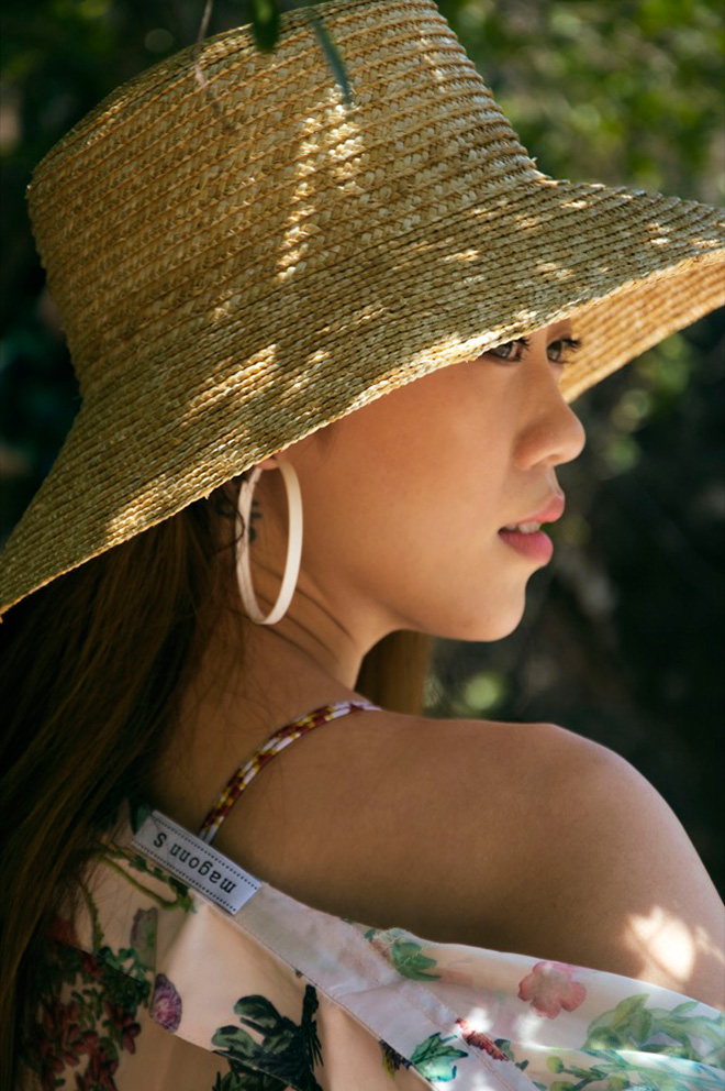 Cùng với áo tắm tôn dáng thì mũ cói, hoa tay to bản cũng rất xinh cho nàng ngực lép ra biển