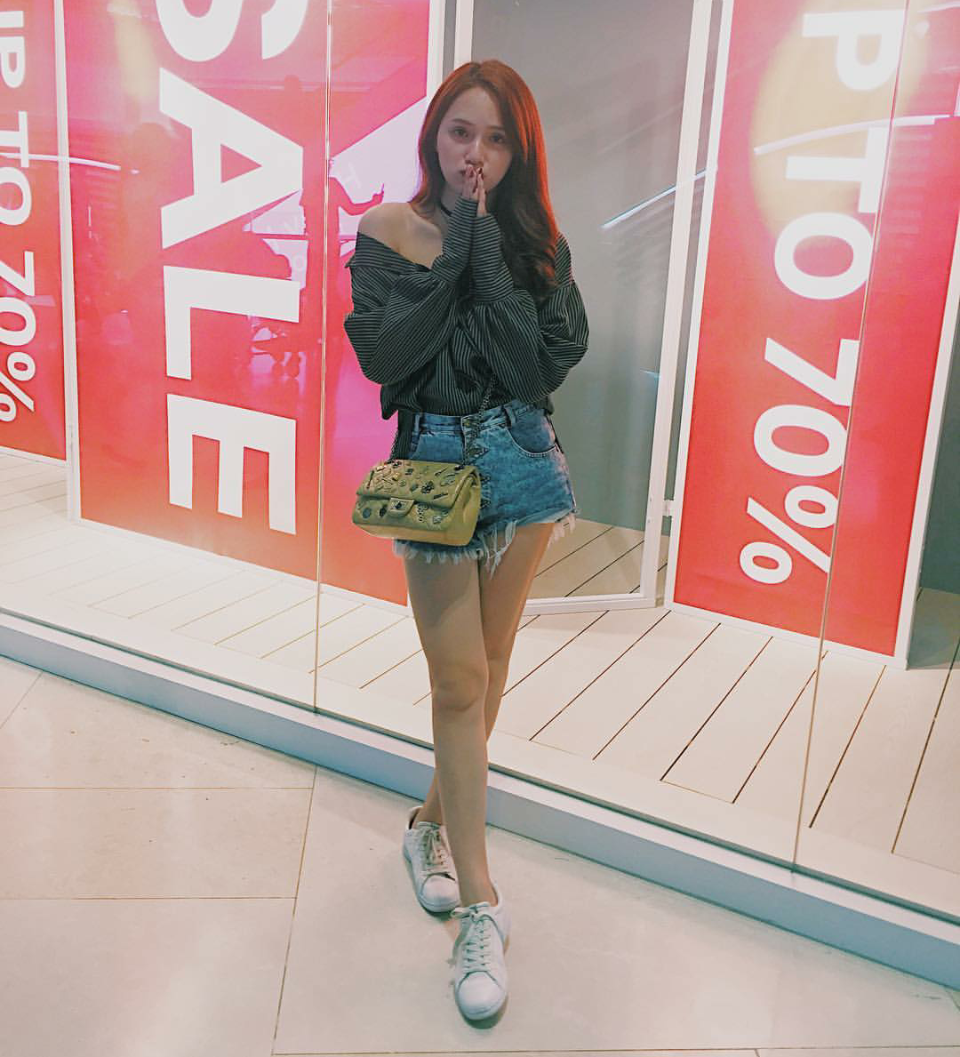 Hương Giang chọn áo sơmi trễ vai mix cùng soóc jean, giày sneaker tạo nên vẻ ngoài vô cùng năng động và cuốn hút.
