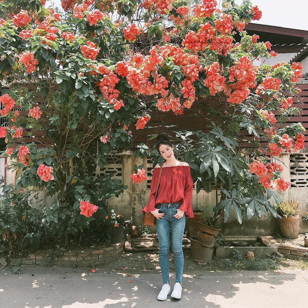 Lối mix đồ của hot girl số 1 Thái Lan rất dễ để bạn có thể học theo.