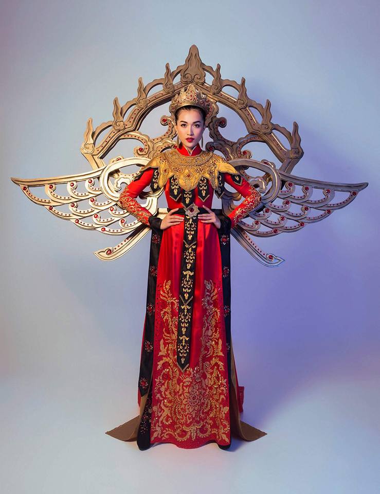 “Sắc Hồn Việt”, ấy cảm hứng thời Âu Lạc Hùng Vương, được nhấn thêm chi tiết hoa văn thời hùng lên trang phục dân tộc, mỗi chi tiết nhỏ đến lớn đều mang một ý nghĩa câu chuyện để làm nên bộ trang phục “National Costume” hoàn chỉnh, tôn vinh sự mạnh mẽ hay linh hồn của con người Việt Nam trên đấu trường Quốc tế.”