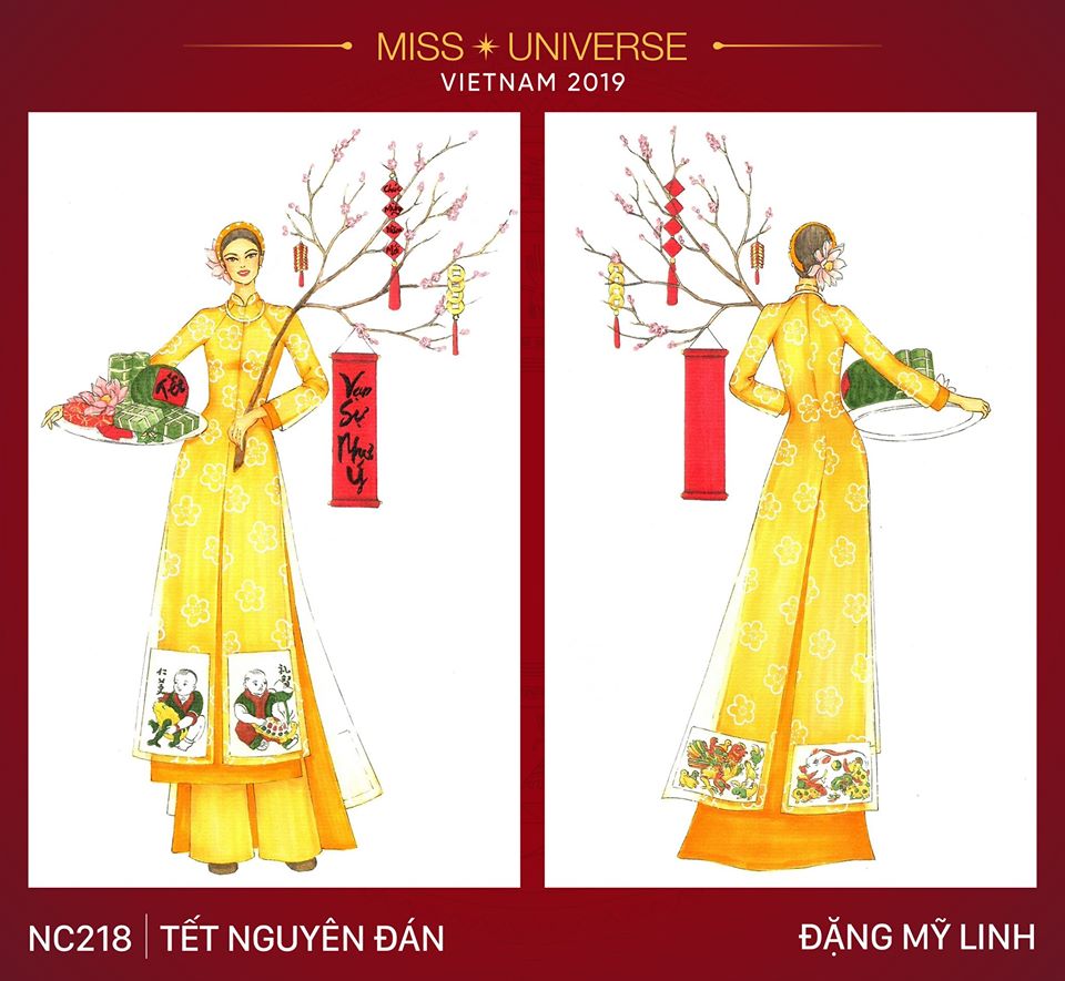 Tết Nguyên Đán”, ý tưởng thiết kế bộ trang phục được bắt nguồn từ dịp Tết Nguyên Đán - dịp lễ đầu năm Âm lịch vô cùng quan trọng và có ý nghĩa bậc nhất ở Việt Nam.