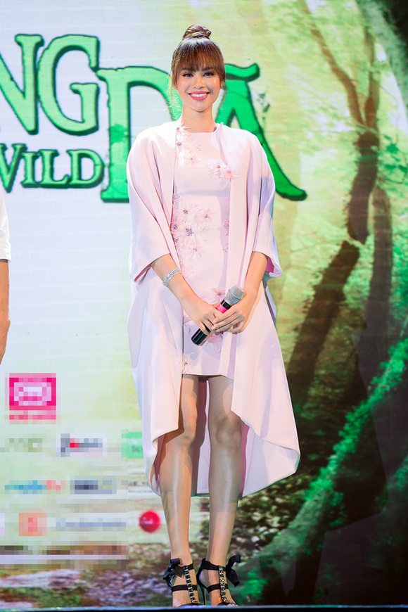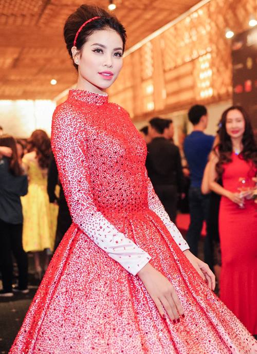 Phạm Hương cũng gây ấn tượng không kém khi xuất hiện với kiểu tóc búi “củ tỏi” vô cùng lạ mắt.