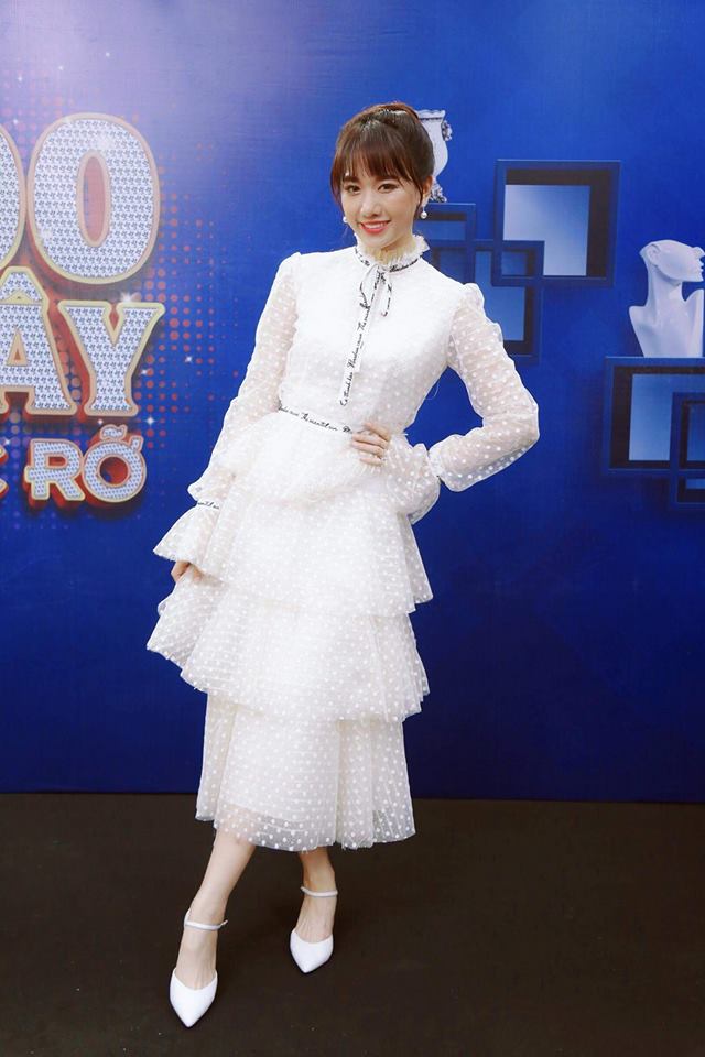 Thời gian gần đây Hari Won chuộng phong cách thanh lịch, ngọt ngào. Trong hình diện đầm ren trắng thanh lịch duyên dáng. Bà xã Trấn Thành ngày càng trẻ trung yêu kiều với gu thời trang hài hòa.