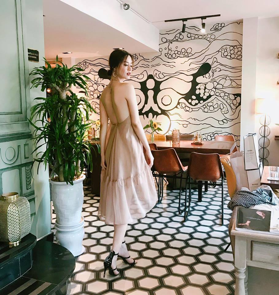 Khoe lưng nõn nà với hình ảnh đời thường trong thiết kế váy cut out táo bạo.