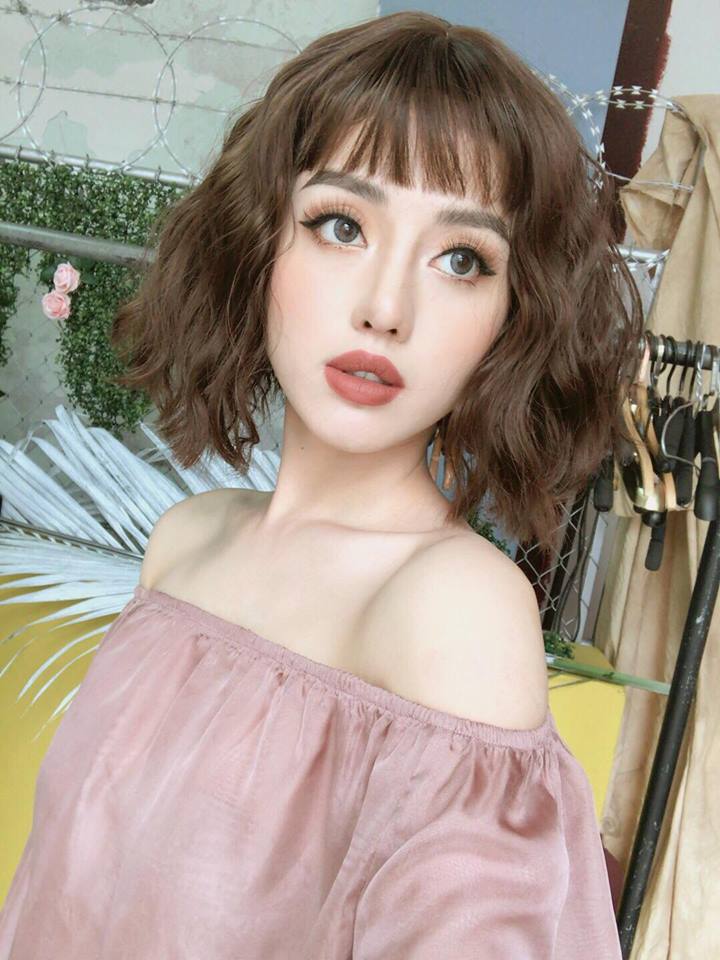 Kiểu tóc ngắn với mái bằng dường như là “bảo bối” khiến mọi cô nàng đều trông trẻ ra chục tuổi và rất trendy. Hiện kiểu dáng này đang là hot trend lan ra diện rộng trong cộng đồng những tín đồ làm đẹp. Chưa dừng lại ở đó, cô nàng còn tôn lên gương mặt gợi cảm bằng màu son cam trên đôi môi căng mọng của mình.