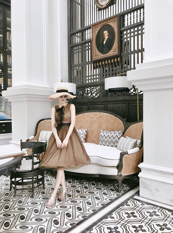 Đôi khi cổ điển với váy chít eo thắt nơ và diễn “so deep” để có bức hình đẹp sang xịn như thế này.