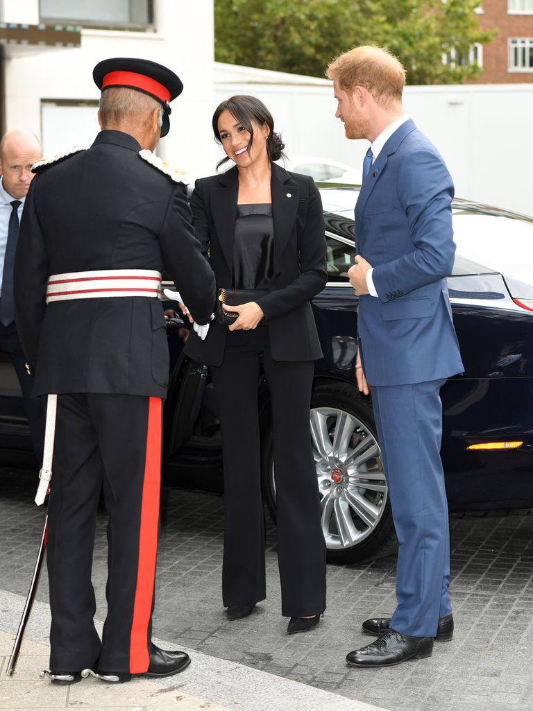 Ví cầm tay là trợ thủ đắc lực trong mọi trường hợp của những quý cô hoàng gia. Khi bước xuống ô tô, các công nương thường cầm ví che trước ngực để tránh hớ hênh. Còn Meghan thì kín đáo giữ ví trước bụng để công chúng không nhận ra cô đang mang bầu.