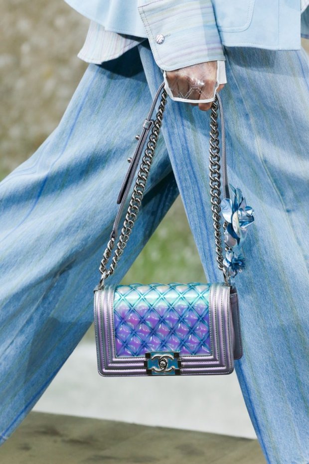 Ngay đến ông lớn Chanel cũng không nằm ngoài cuộc chơi màu sắc lấp lánh. Chanel đã gây choáng ngợp giới mộ điệu bằng bộ sưu tập trần ngập màu bạc đa chiều, đặc biệt là trong thiết kế túi xách.