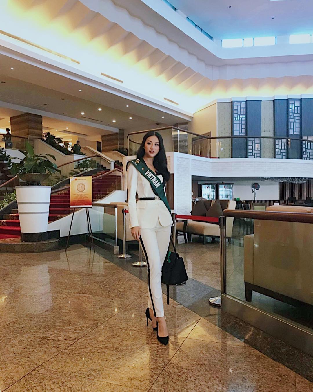 Trong cuộc thi, bên cạnh những bộ đầm sang chảnh, nền nã, Phương Khánh cũng không ngại đổi mới hình ảnh cùng bộ suit cá tính, ôm thân vừa vặn tôn lên 3 vòng cùng đôi dài của cô.