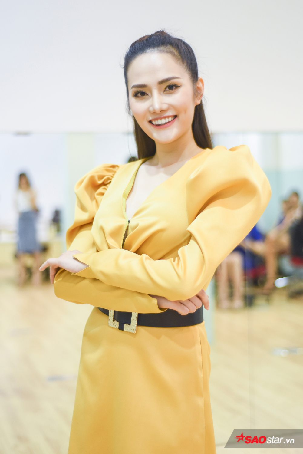 Xuất hiện tại buổi huấn luyện, Diệu Linh thu hút sự chú ý của mọi người bởi nhan sắc quyến rũ cùng thần thái chuyên nghiệp.