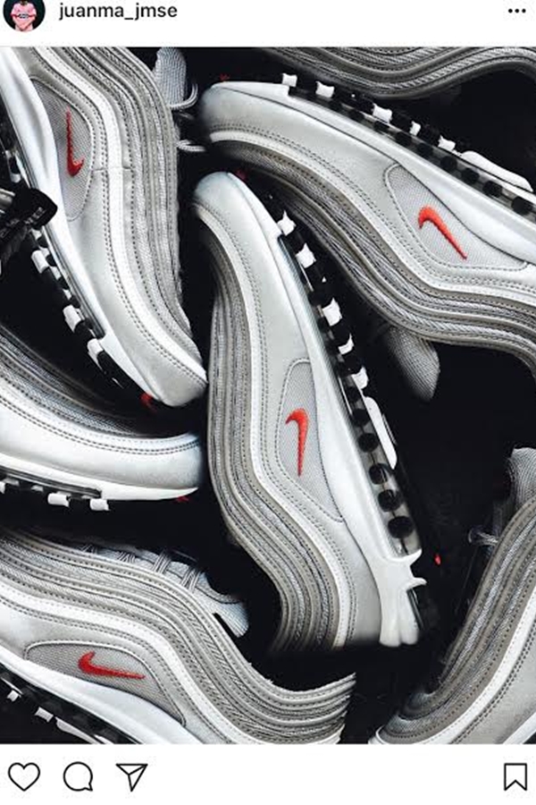 Đây là một bí quyết để có những bức ảnh ghi lại đôi sneaker yêu thích của bạn trông thật hay ho đấy, Nike Air Max 97 Silver “so high”.