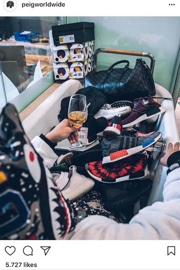 Tất nhiên không phải ai cũng có khả năng là ngồi uống rượu và nằm giữa cả lô siêu phẩm như thế này, toàn NMD, Utra Boost… chẳng lạ gì khi bức ảnh nhanh chóng nhận được sự yêu thích từ các bạn trẻ.