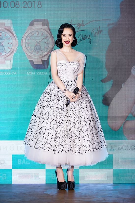 Chiều 10/8, Angela Phương Trinh góp mặt trong buổi giới thiệu gương mặt đại sứ thương hiệu cho một nhãn hiệu đồng hồ nổi tiếng thế giới.