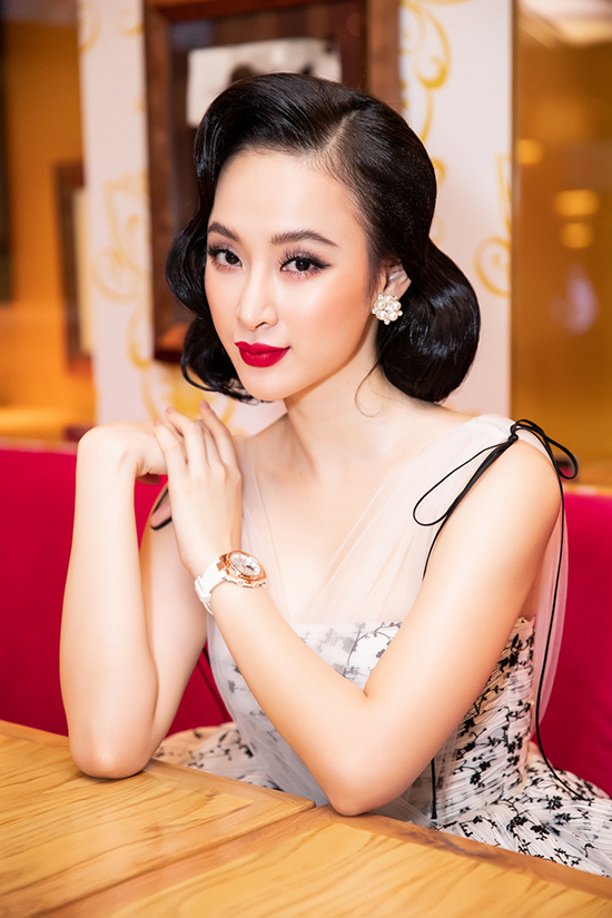 Xuất hiện trong sự kiện quan trọng, Angela chăm chút kỹ lưỡng cho tạo hình với phong cách cổ điển quý phái.