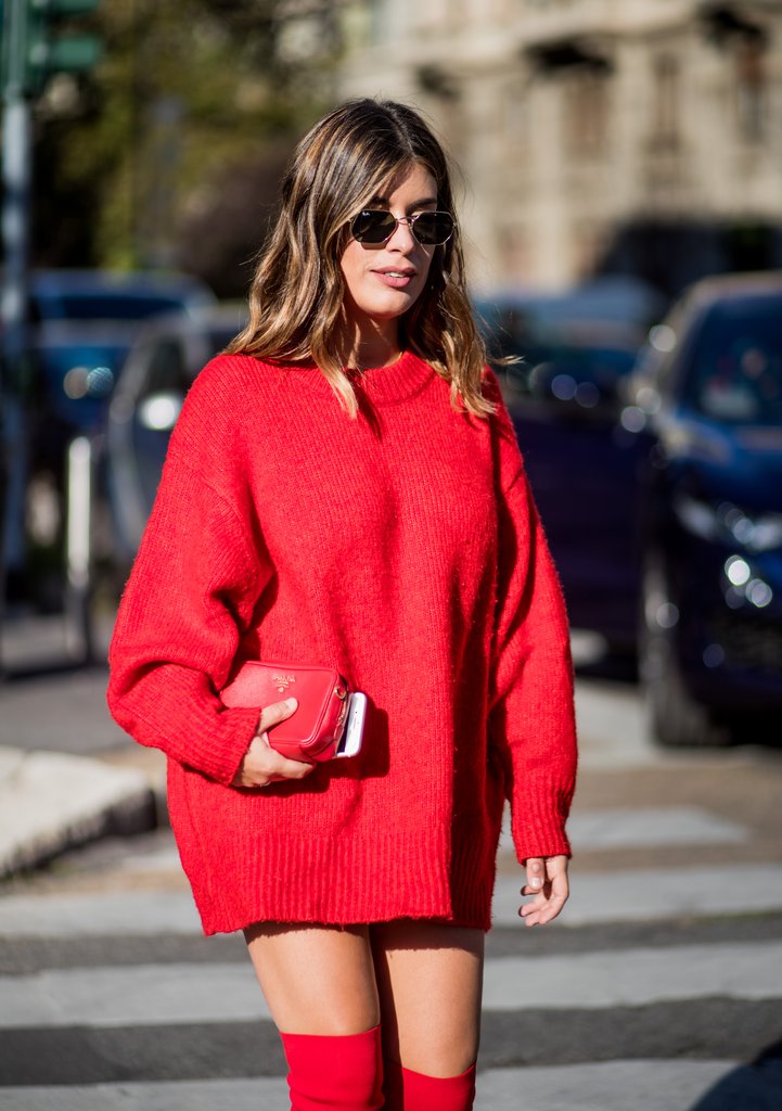 Đây là điển hình của câu nói “thời trang phang thời tiết”, quý bà như muốn chiếm trọn spotlight khi khoác lên người full set đỏ “không sợ chìm”, khéo léo khoe đôi chân với style giấu quần của mình.