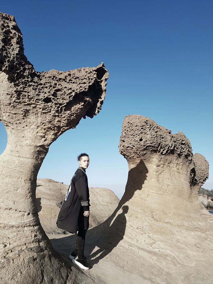 Stylist Kelbin Lei đang có chuyến du lịch đầu năm mới tại Đài Loan. Anh chàng trung thành với style diện nguyên cây đen của mình với áo choàng dài và skinny jeans.