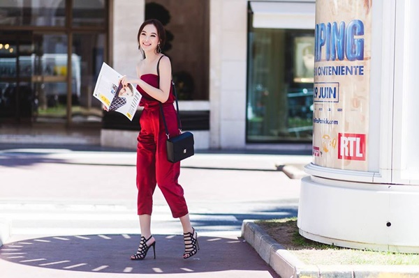 Angela Phương Trinh đã sử dụng chiếc túi trở thành món đồ phụ kiện thời trang đắt giá cho set đồ để có được shoot hình street style vô cùng cá tính.