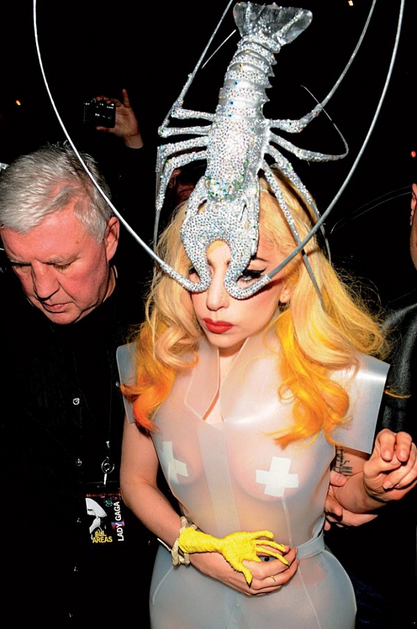 Hàng loạt mẫu mũ độc đáo mà Philip Treacy làm cho nữ ca sĩ Lady Gaga gây ấn tượng với các tín đồ thời trang điển hình như thiết kế mũ như con tôm khổng lồ màu bạc này