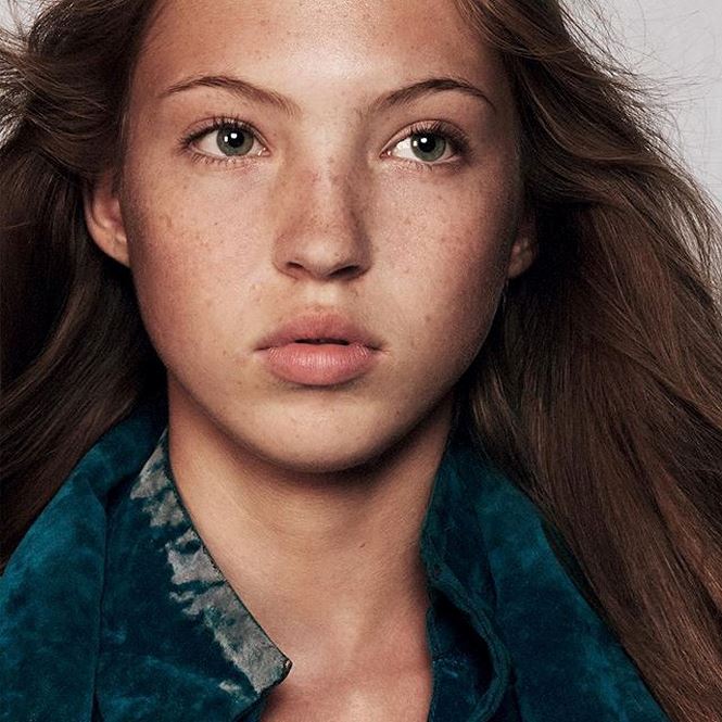 Lila Grace Moss sinh năm 2002, cô bé sở hữu gương mặt hơi bầu bĩnh với những đường nét xinh đẹp hài hoà. Đặc biệt với đôi mắt to màu xanh trong veo khiến cô nàng càng trở nên đặc biệt và cuốn hút.