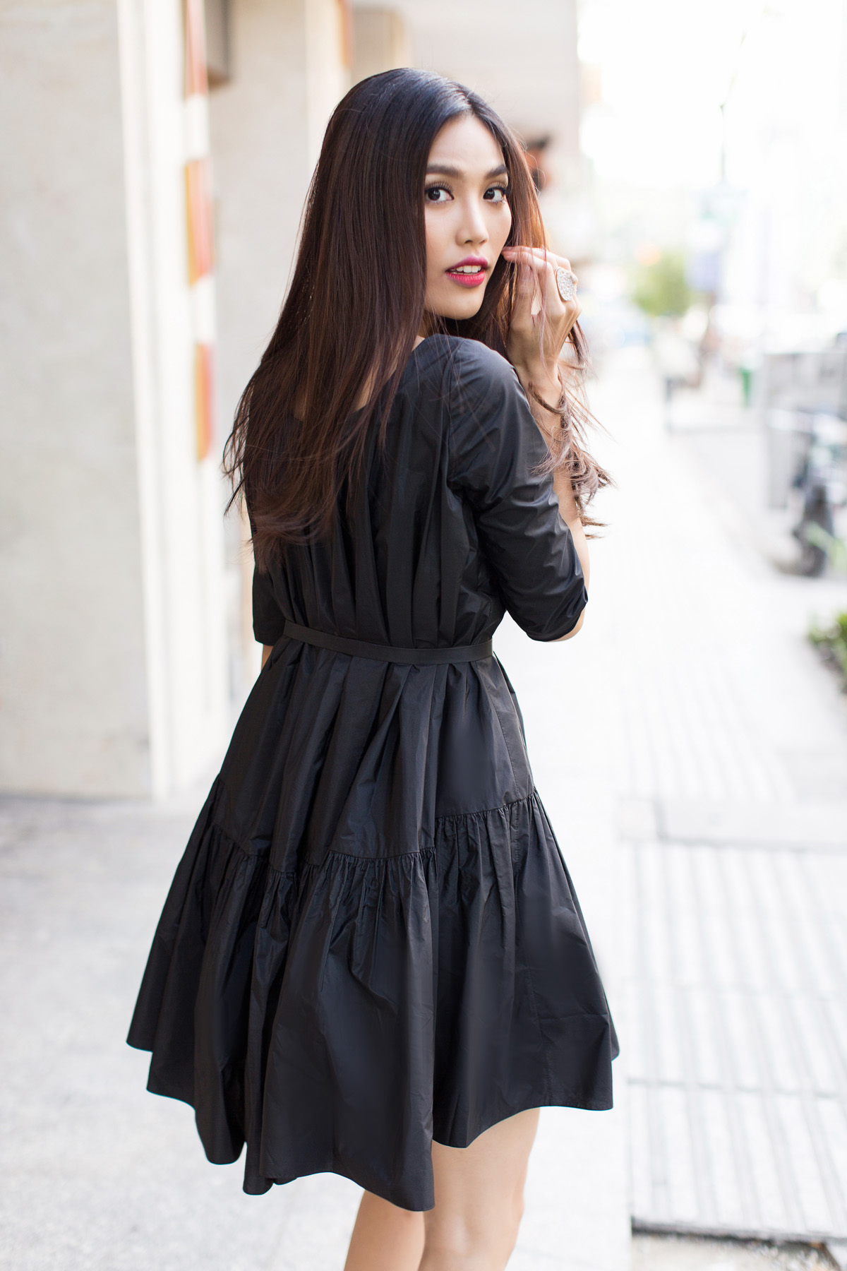 Nếu như màu đỏ lại thể hiện cho sự sôi nổi, nhiệt huyết với nghệ thuật trong cô thì màu đen tượng trưng cho sự trầm lắng, sâu sắc trong cá tính của siêu mẫu.