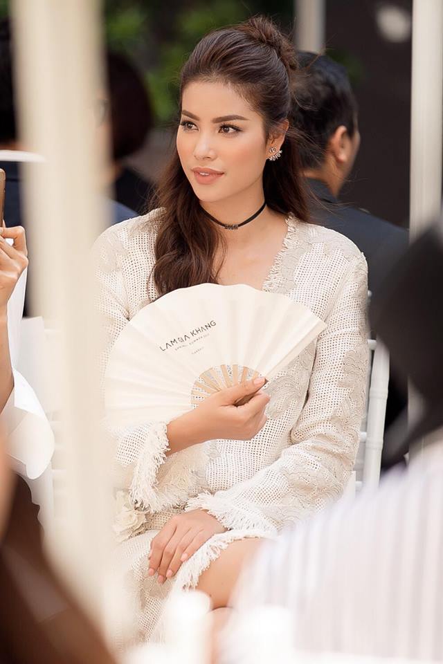 Tham dự show diễn của NTK Lâm Gia Khang, Phạm Hương gây ấn tượng cùng lối trang điểm đánh khối tông nâu thể hiện nét quyền lực, bờ môi màu nude, chân mày xếch hợp xu hướng giúp người đẹp lần nữa ghi dấu ấn trong lòng công chúng.