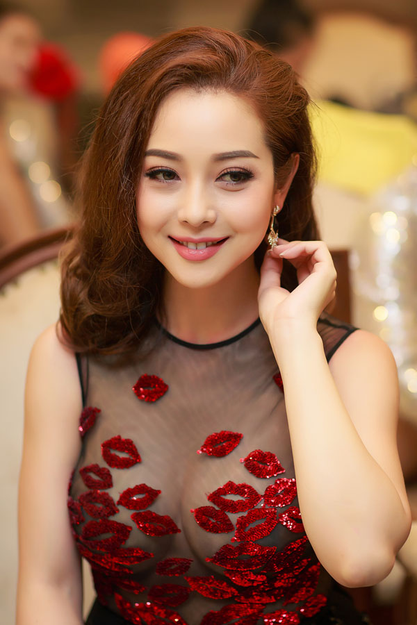 Tham dự sự kiện ra mắt một thương hiệu thời trang, Angela Phương Trinh hướng đến hình tượng một tiểu thư thập niên sang trọng khi lựa chọn màu son đỏ, mắt nhấn xếch và mi giả dày, dài.