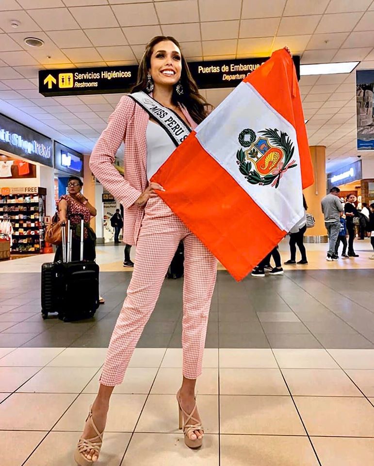 Hoa hậu Peru diện vest họa tiết ca-rô màu hồng pastel.