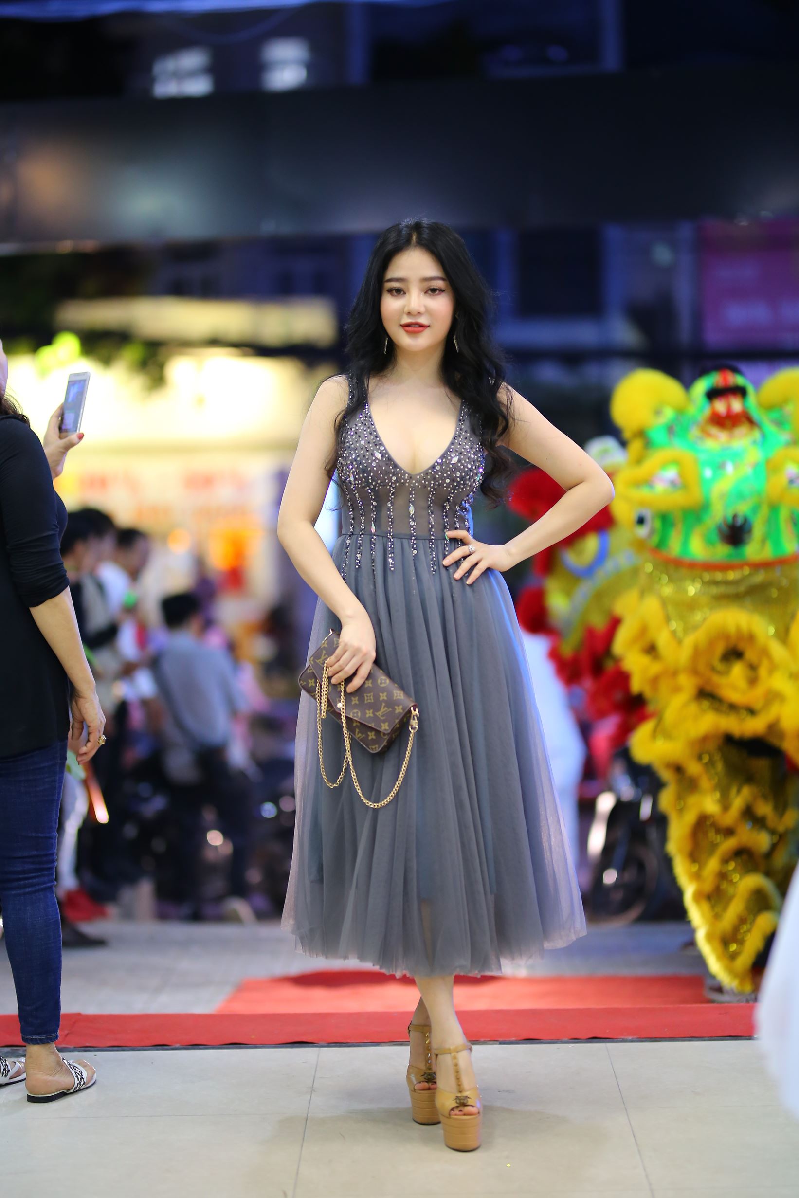 Người đẹp Gia Hòa ghi dấu ấn bằng thiết kế lệch vai bất đối xứng, khoe đôi chân dài.