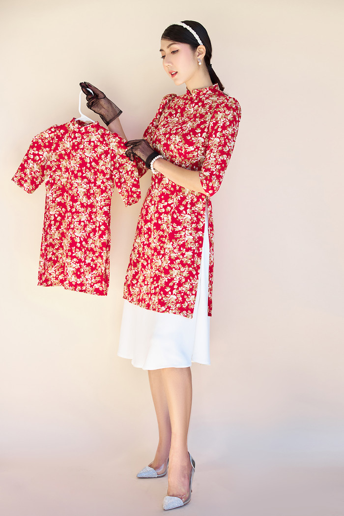 Mẫu áo dài cách tân là gợi ý hay để mặc đồ đôi với công chúa nhỏ của bạn khi có độ dài vừa phải, dễ dàng trong việc di chuyển.Những màu sắc tươi tắn, họa tiết rực rỡ được yêu thích trong những ngày đầu năm với mong muốn có năm mới nhiều may mắn.Họa tiết nền gạch hoa vài năm gần đây cũng được yêu thích in trên áo dài.Mẫu thiết kế hoa nhí luôn đem đến hình ảnh ngọt ngào và thu hút. Bạn có thể làm điệu cho 2 mẹ con bằng nơ to bản khi đi chơi Tết.Họa tiết chấm bi đem đến cảm giác cổ điển khi diện áo dài.Ngọc Quyên lựa chọn áo dài cách tân, mặc với chân váy phóng khoáng.Thiết kế tay bồng cũng là lựa chọn hay cho dịp Tết năm nay.Bạn có thể thêm băng đô, khuyên tai để tạo điểm nhấn thu hút hơn.Những trái tim ngọt ngào chắc hẳn sẽ giúp hình ảnh của bạn và con gái trở nên hấp dẫn.Rất nhiều bà mẹ thường lựa chọn mặc đồ đôi với con trong những dịp đặc biệt, đây là cách để có thể gắn kết tình cảm hơn.Phụ kiện ngọc trai cũng luôn được ưu ái và phù hợp khi diện áo dài.Chất liệu mềm mại, dễ chịu với làn da là điều bạn cần lưu ý khi chọn đồ đôi với con.Mùa xuân, những gam màu như vàng, xanh, đỏ đem đến cảm giác tươi mới với nhiều ý nghĩa tốt đẹp thường được lựa chọn.Giày cao gót là lựa chọn thích hợp với các bà mẹ khi diện áo dài khi có thể tôn dáng triệt để. Đối với các bé gái, những mẫu giày búp bê xinh xắn là lựa chọn hoàn hảo.Váy trắng là gam màu có thể dễ dàng phối với mẫu áo dài họa tiết nên thường được Ngọc Quyên sử dụng trong các thiết kế.Ngoài áo dài truyền thống, áo dài cách tân như một luồng gió mới giúp kiểu trang phục này có trở nên phổ biến và có tính ứng dụng cao hơn.